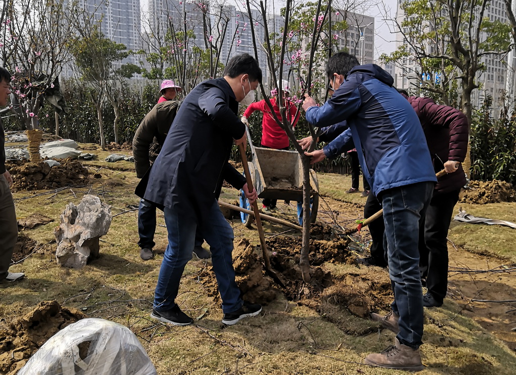 鑒于目前尚處于疫情防控階段,大家戴上口罩、手套,在做好自身安全防護(hù)工作的同時(shí),一起來(lái)到新搬遷的集團(tuán)公司綠化帶的空地上,他們有的揮鍬鏟土,有的扶苗填坑,干得勁頭十足、熱火朝天,大家分工協(xié)作,認(rèn)真地完成著每一道工序,精心地栽下每一棵樹(shù)苗。經(jīng)過(guò)大家一上午的辛勤勞動(dòng),集團(tuán)公司的綠化環(huán)境得到了很大的改善。